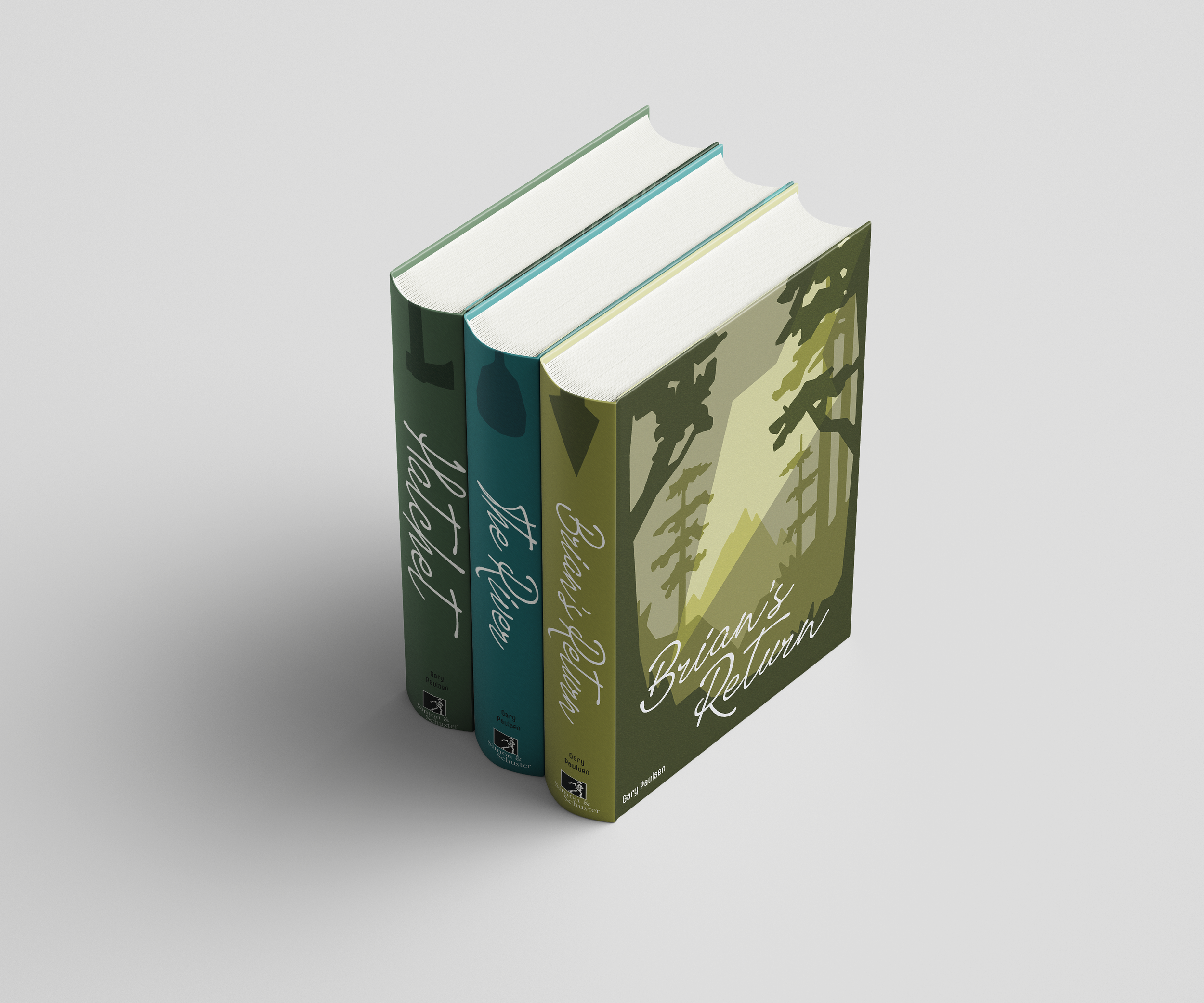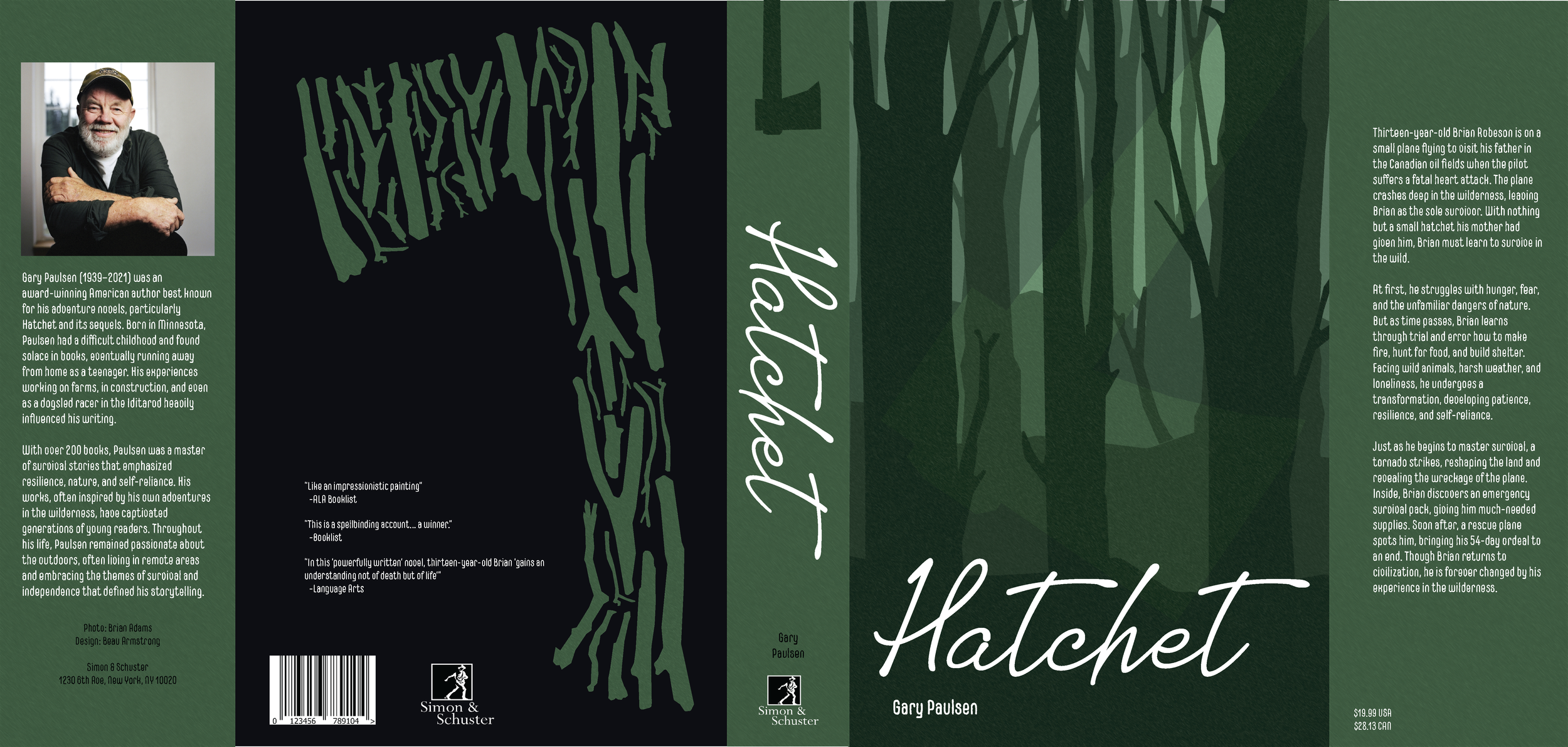 This project had me taking the Hatchet series by Gary Paulsen and creating brand new jackets with a consistent design and style.
